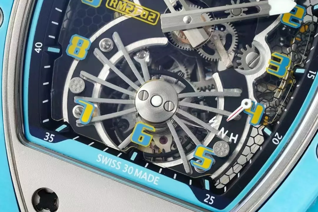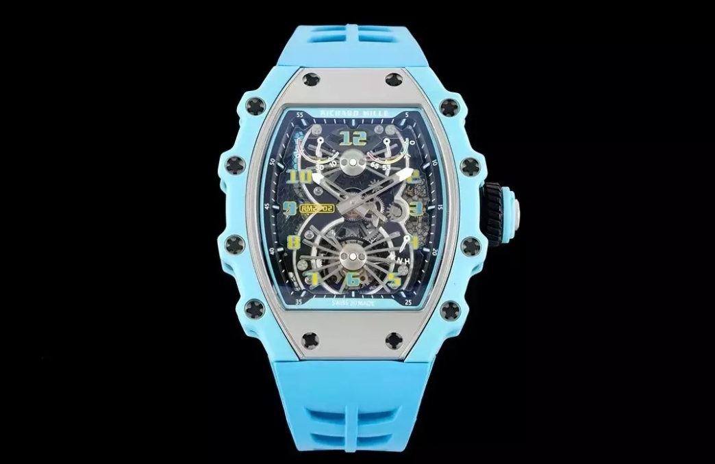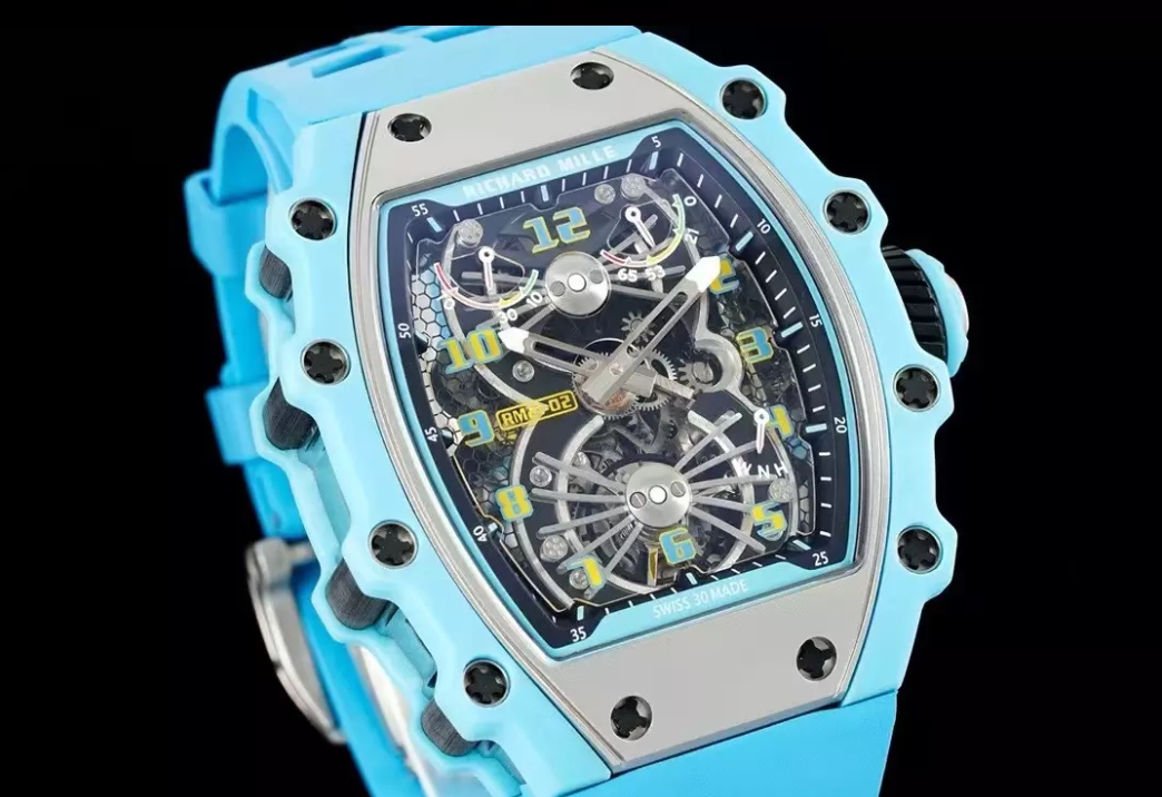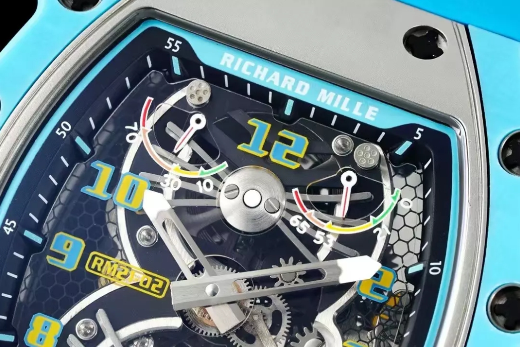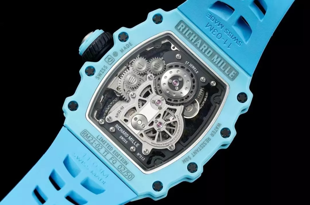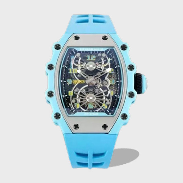 뚜르비용 에어로다인 블루 러버밴드 / RM RM21-02 / 43mm / 티타늄 케이스 블루 쿼츠 섬유, 스켈레톤 투르비옹 무브먼트, 43mm x 16.6mm