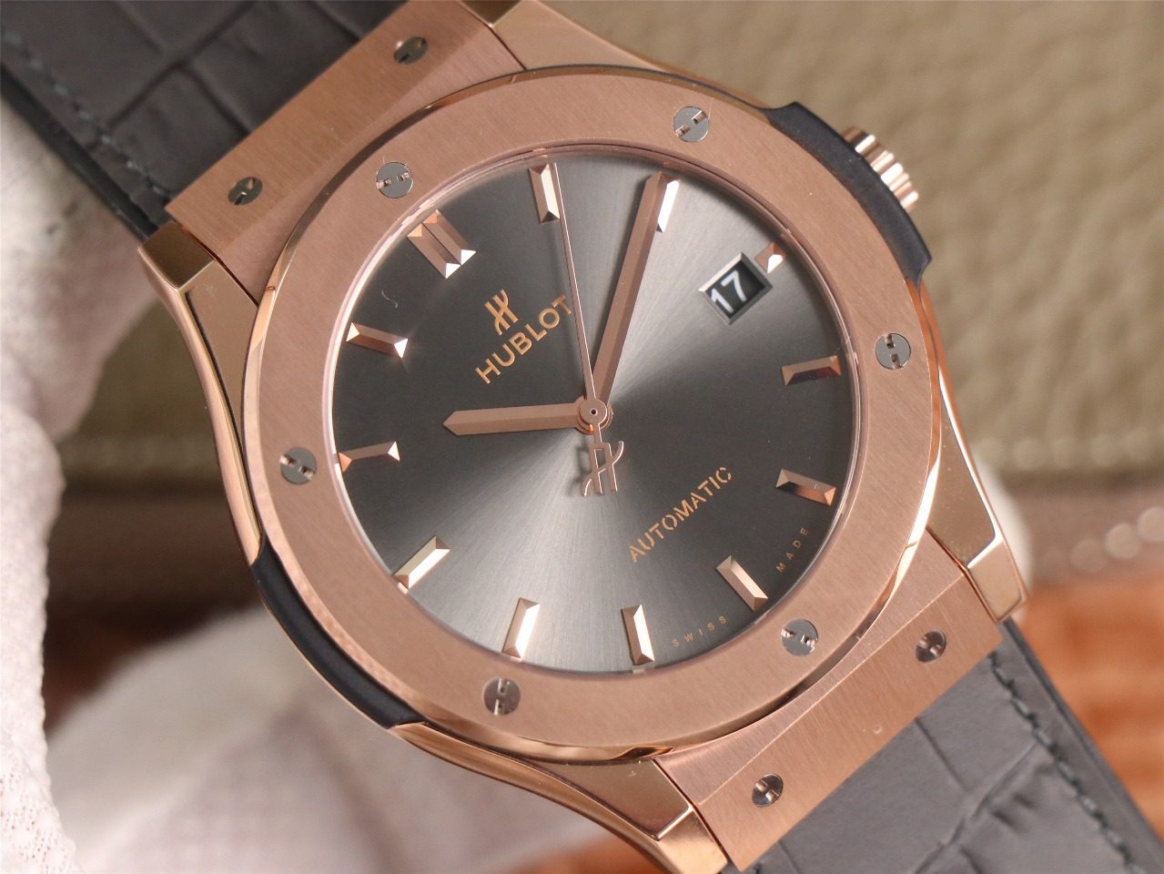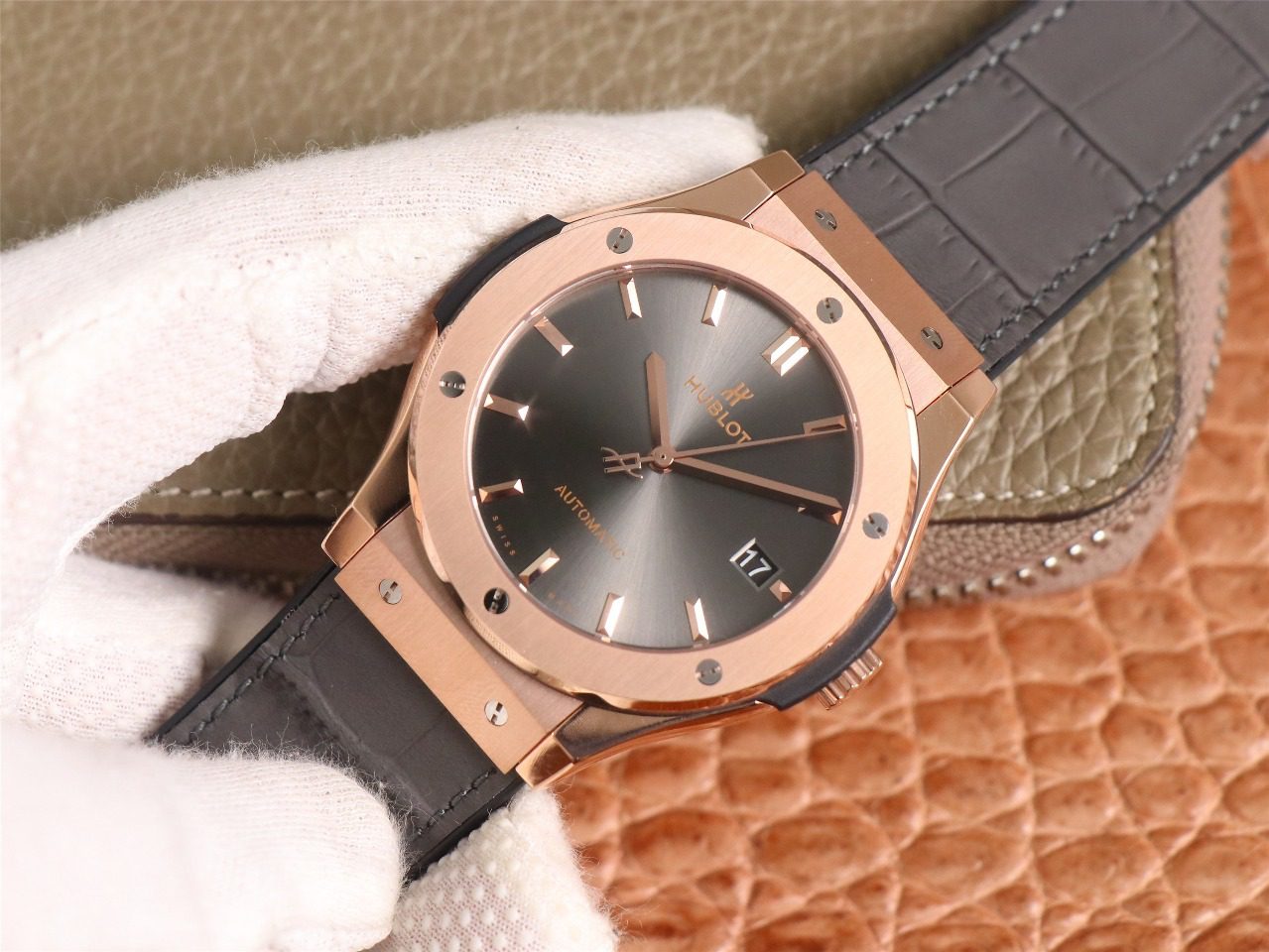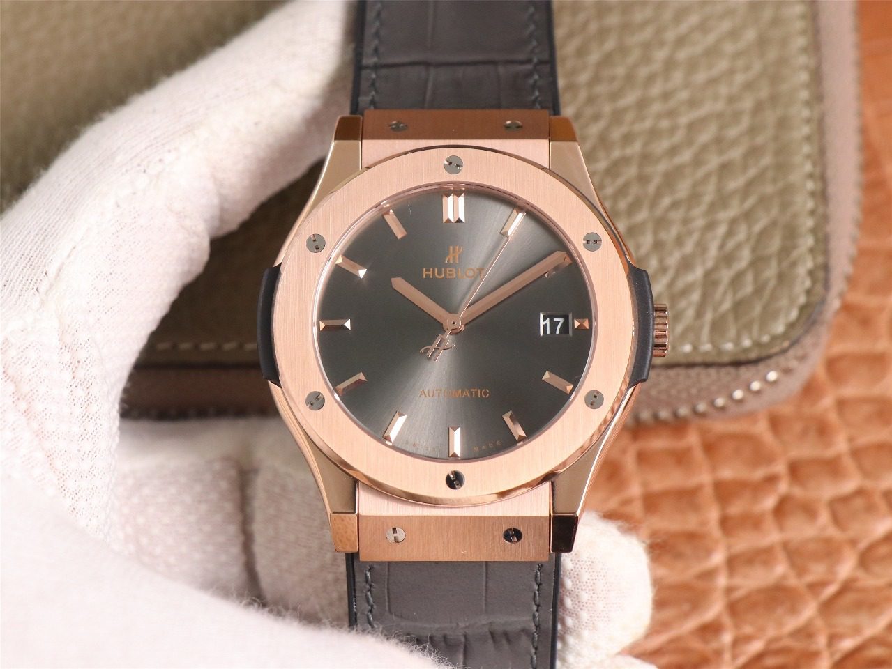 클래식 퓨전 로즈골드 레이싱 그레이 다이얼 러버 스트랩 / WWF 511.OX.7081.LR / 45mm / 맞춤형 HUB 11 자동 기계식 무브먼트