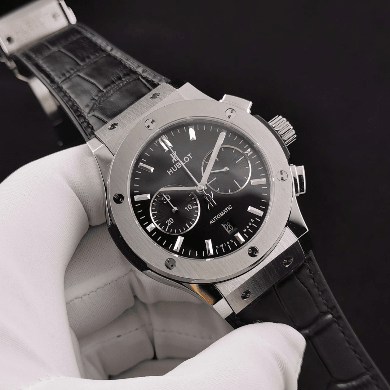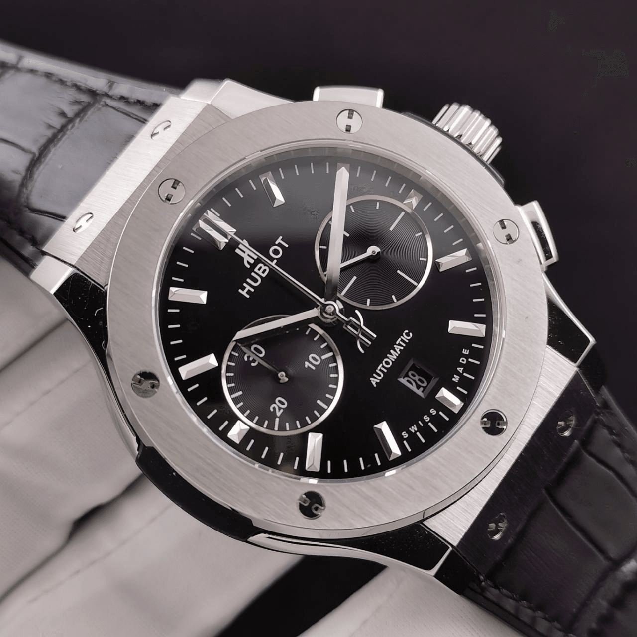 클래식 퓨전 크로노그래프 티타늄 블랙 다이얼 가죽 스트랩 / HB 521.NX.7171.LR / 45mm / Hub 7750 다기능 크로노그래프 무브먼트