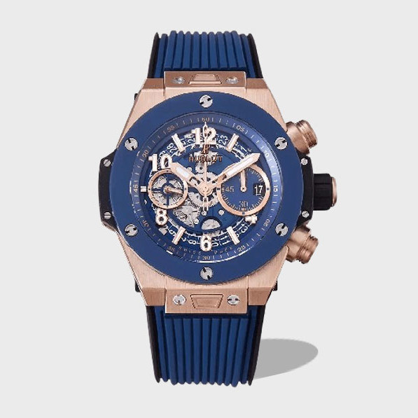 빅뱅 크로노그래프 로즈골드 세라믹 베젤 블루 러버 스트랩 / BBF 421.OL.5180.RX / 44mm / 최고퀄 공장, HUB1280 무브
